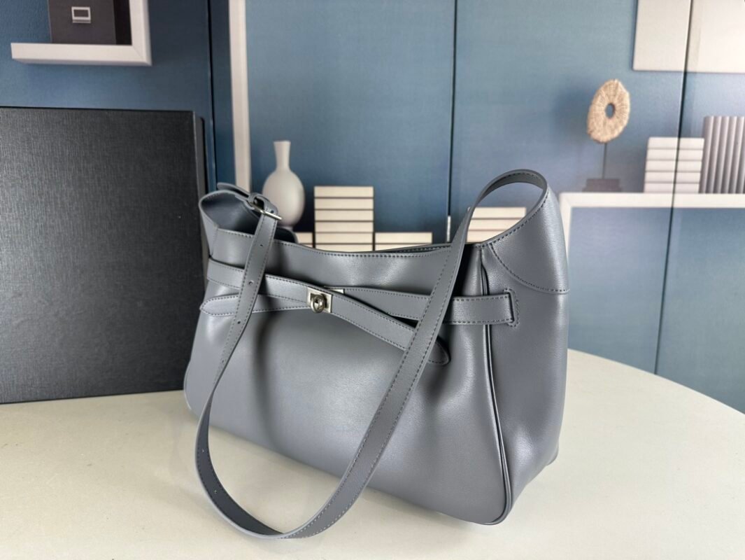 New Balenciag Winter 24 series Re-see handbag, single-shoulder bucket bag, made of top-layer cowhide with visible texture. Adopts original hardware. Minimalist, high-end and atmospheric. A handbag transformed from a motorcycle glove. Hanging with fashion recreated from a key ring buckle. It gives an indolent and domineering lady style when worn. Size: 37x21x10.