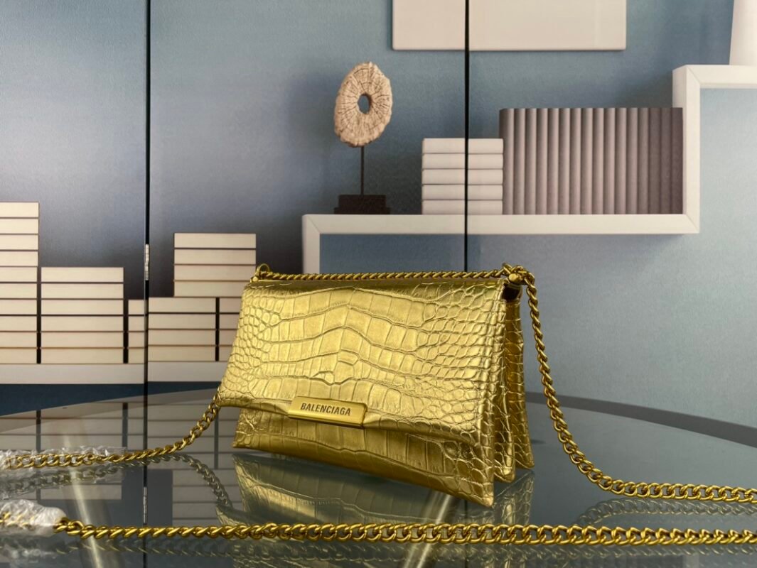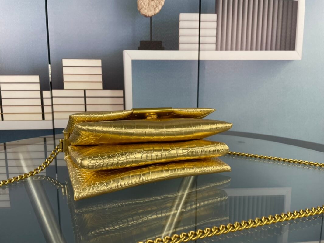 The newly launched small square crocodile pattern bag. The design of the chain length allows it to be worn on one shoulder or crossbody. The simple crocodile pattern combined with the logo mark instantly fills it with a high level of sophistication.