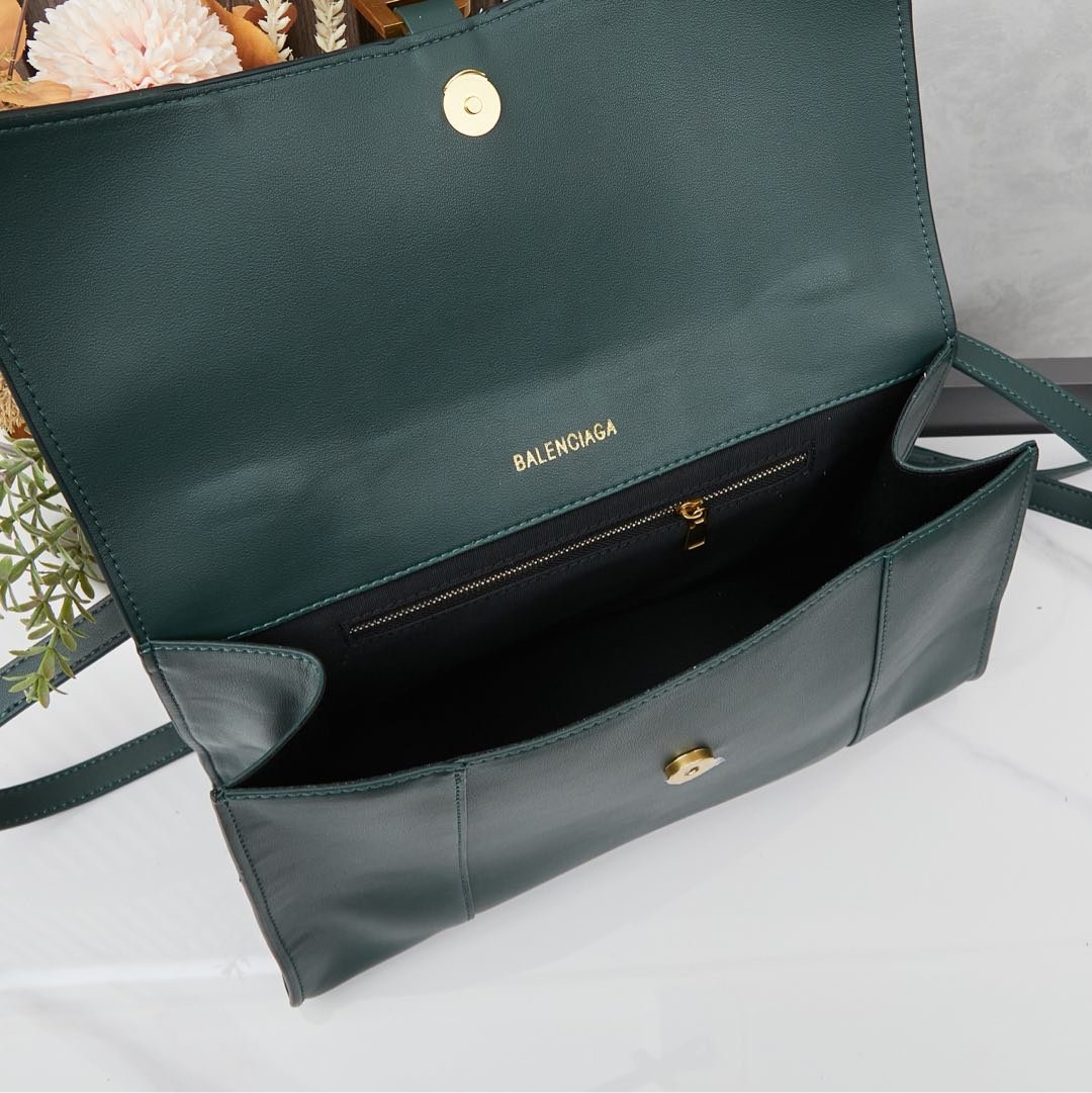The latest long-handled Hourglass bag from Balenciaga, Balenciaga Hourglass Hourglass, has a particularly strong sense of styling and is stunning at first glance. The entire bag has a lot of curved lines but also has edges and corners. It is both firm and soft. The contour of the entire line is very similar to the Eiffel Tower in Paris. No wonder it is so beautiful! The small size is 25x15x8.