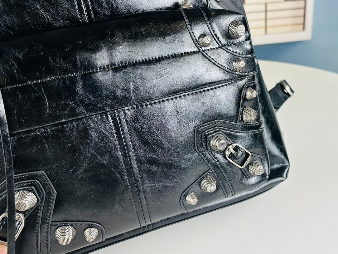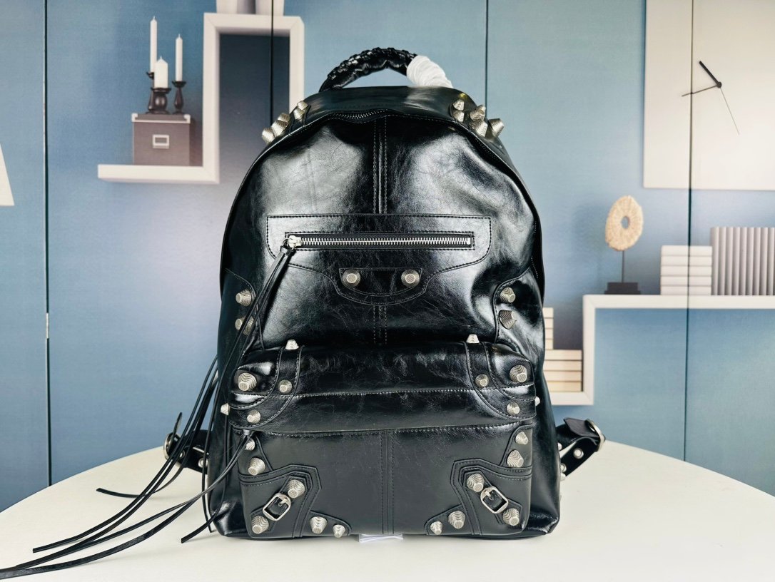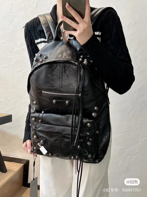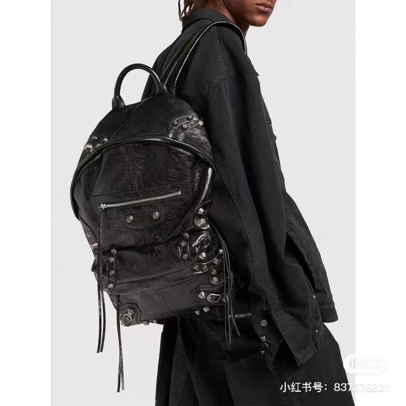 New style. Top-grain leather ❤️ A fashionable bag that can elevate the whole body’s outfit ||| Balenciaga Le Cagole studded backpack. A super cool and interesting backpack. Casual and lazy, a bit cool and chic. Hahaha. It is a backpack that can elevate the whole body’s outfit. Leather determines the soul of the whole bag. #Motorcycle bag Balenciaga bag. Size: 34x49x9.