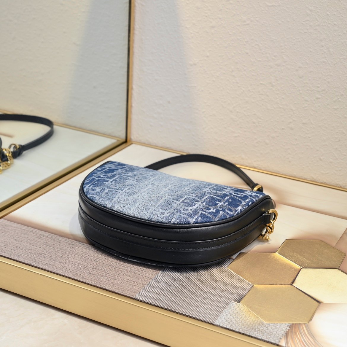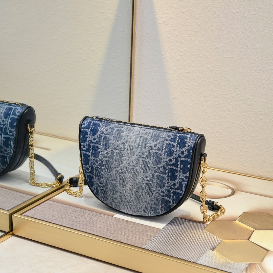 This callisto chain handbag is a new addition to Dior’s autumn collection, and it enhances the style of the collection with a stylish and elegant half-moon shape. It is carefully crafted in blue oblique print and embellished with the same tone of cow leather detailing. The zipper is designed to open and close, with a circular plaque engraved with the logo and star symbols, and the spacious compartment is equipped with multiple card slots. CD chain link chain is decorated with resin beading and paired with a leather strap for even more comfort on the shoulder. Dimensions: 20x14x4 cm