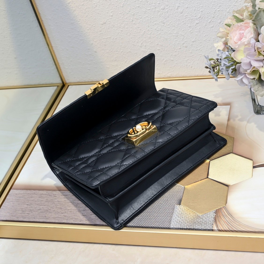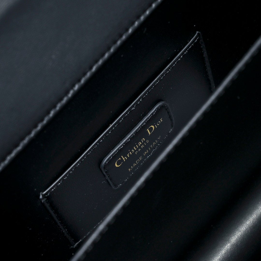 Start Dior’s new series with an elegant and fashionable aesthetic style. With oversized cannage topstitching, a stiff retro gold-finished metal top handle engraved with the Christian Dior Paris logo. The flap is decorated with a CD clasp embellished with resin beads. The silhouette with triangular lining is matched with two spacious compartments and an insert pocket, which can hold various daily necessities. The design is elegant. The adjustable and detachable chain shoulder strap is composed of gold-finished metal CD chain links embellished with resin beads. It can be carried by hand, on the shoulder or crossbody.