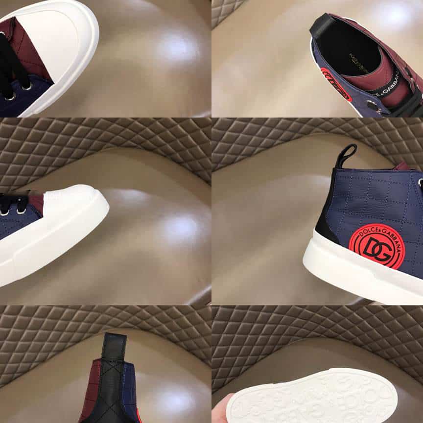 DOLCE AND GABBANA QUILTED TWO-TONE NYLON PORTOFINO LIGHT MID-TOP SNEAKERS – DG105