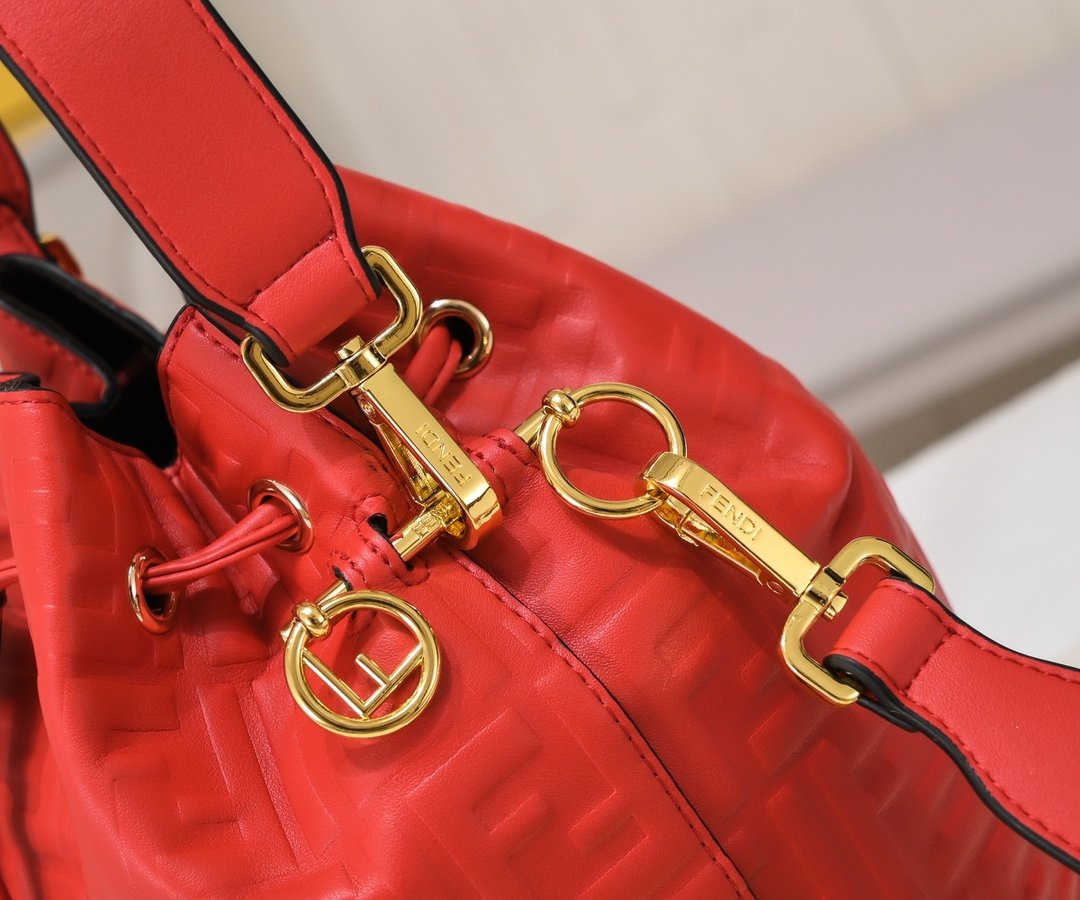 Shipment! Shipment! Shipment! ✨ Medium-sized MON TRÉSOR bucket bag. 👉8897💗 Drawstring closure decorated with metal decorative pieces in the shape of the FENDI logo. Equipped with a long shoulder strap that can be adjusted in length for shoulder or diagonal carrying. Made of black embossed calfskin🐂 and decorated with a red circular cowhide printed logo. Palladium-plated metal accessories🔱. Model 8897. Dimensions 17/15/25 cm. The shortest shoulder strap is 19 cm and the longest is 115 cm.