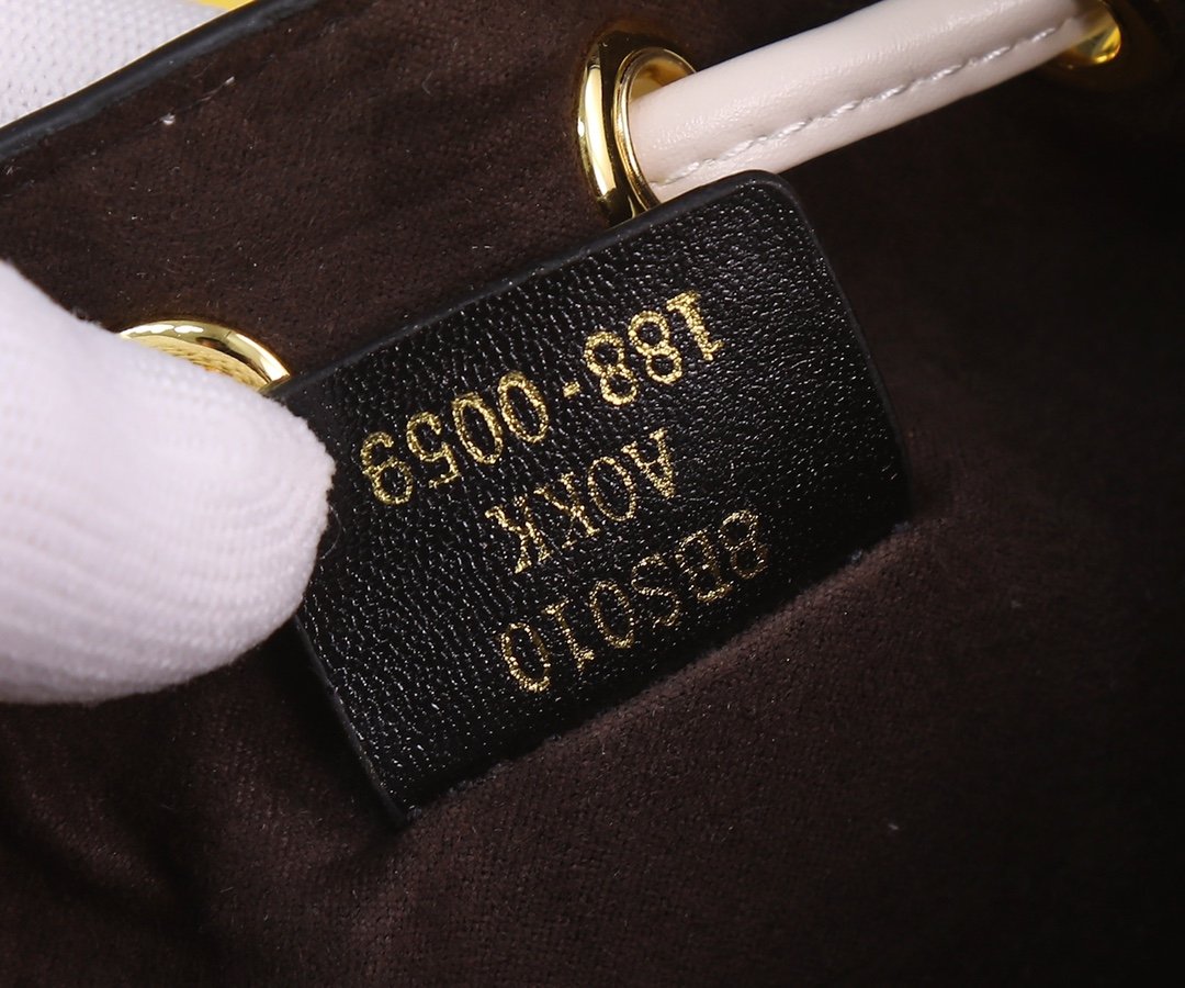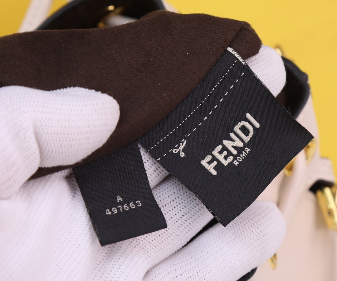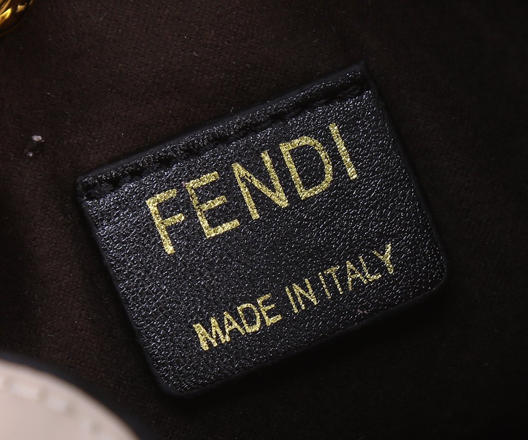 New F END1 Mon tresor bucket bag. The small bucket bag can be worn diagonally on the shoulder and serve as a decoration. Compared to the maturity of the classic double F, this small white bag with a large logo is even more simple and versatile! Model: 889200. Size: 18x12x10cm.