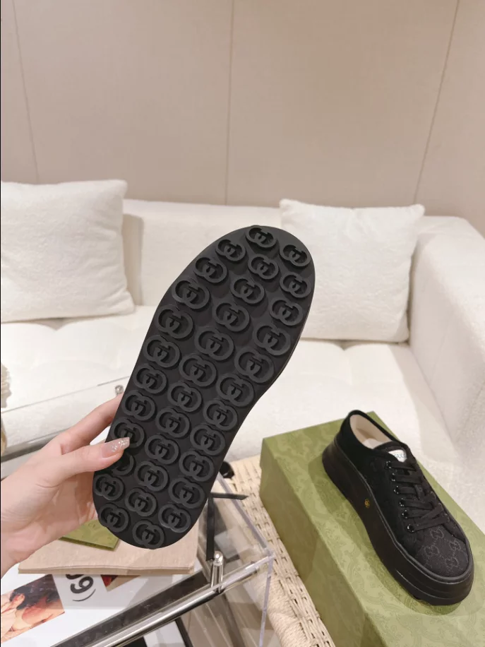 #GGTrainer #Sneaker #OriginalGGCanvas #GrosgrainTrim #InterlockingG #LaceUp #FlatSole #GucciStyle #FootwearFashion #CasualStyle