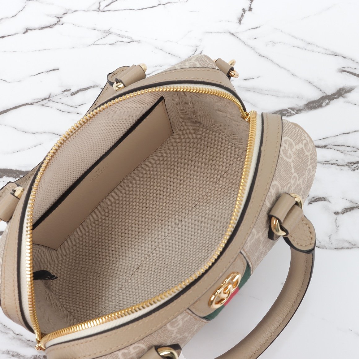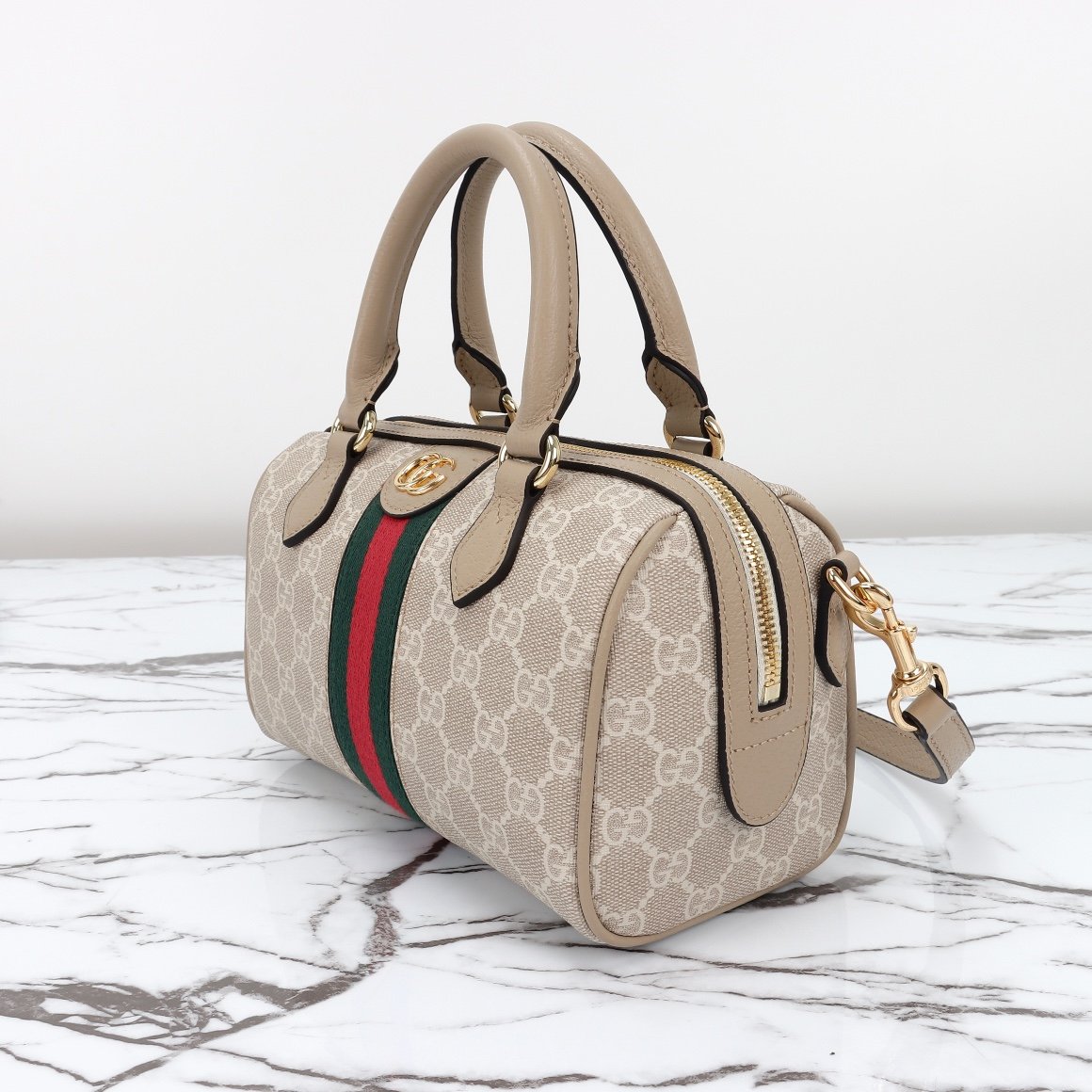 This mini handbag is embellished with the brand’s classic letter interwoven pattern. Classic interlocking double G shape accessories add brand identity charm to this single item. Size: 14 (L) x 21.5 (W) x 11.5cm (Thick)