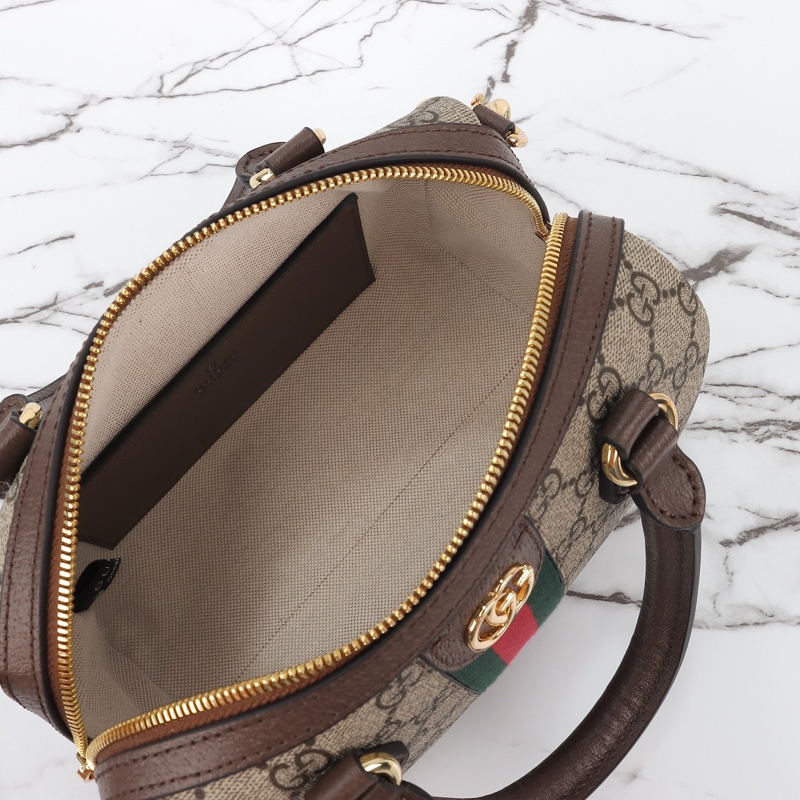 This mini handbag is embellished with the brand’s classic letter interwoven pattern. Classic interlocking double G shape accessories add brand identity charm to this single item. Size: 14 (L) x 21.5 (W) x 11.5cm (Thick)