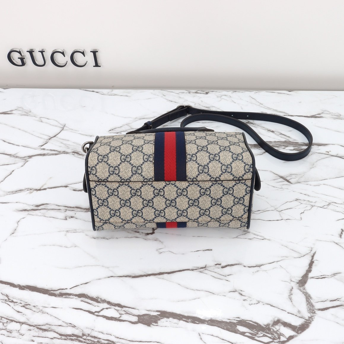 This mini handbag is embellished with the brand’s classic letter interwoven pattern. Classic interlocking double G shape accessories add brand identity charm to this single item. Size: 14 (L) x 21.5 (W) x 11.5cm (Thick)