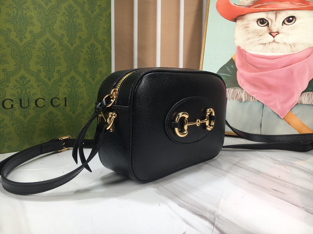 [New series presents the Horsebit 1955 series small shoulder bag, which combines versatility and practicality. This shoulder bag is crafted with classic black leather. The zipper closure and adjustable shoulder strap make the whole design more complete.