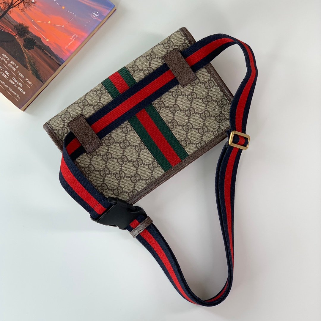 [G] 🔥🔥🔥 Ophidia series GG fanny packBeige/ebony GG with brown leather, cotton and linen lining, adjustable belt lengthColor: PVC Brown Size: 24X17X4