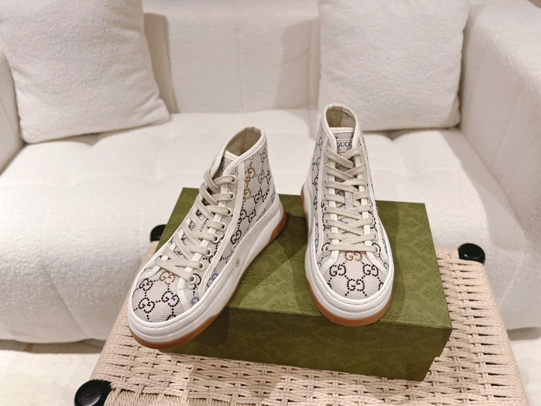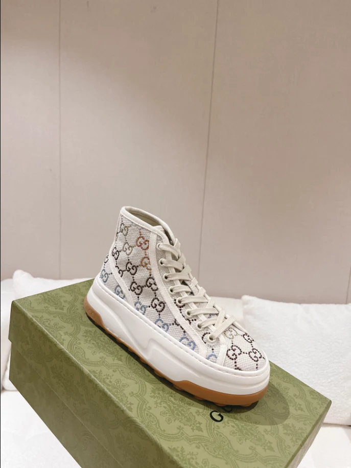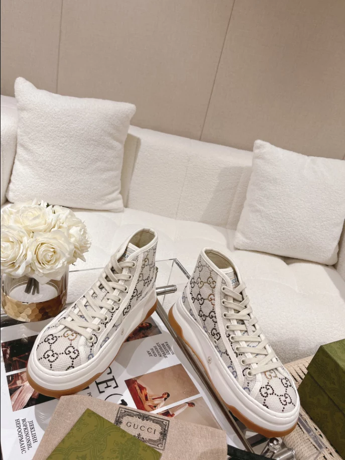 #Gucci #HighTopSneaker #GGSupremeCanvas #TennisInspired #InterlockingG #RubberSole #LaceUp #CasualElegance #FootwearFashion #GucciStyle #IconicDesign