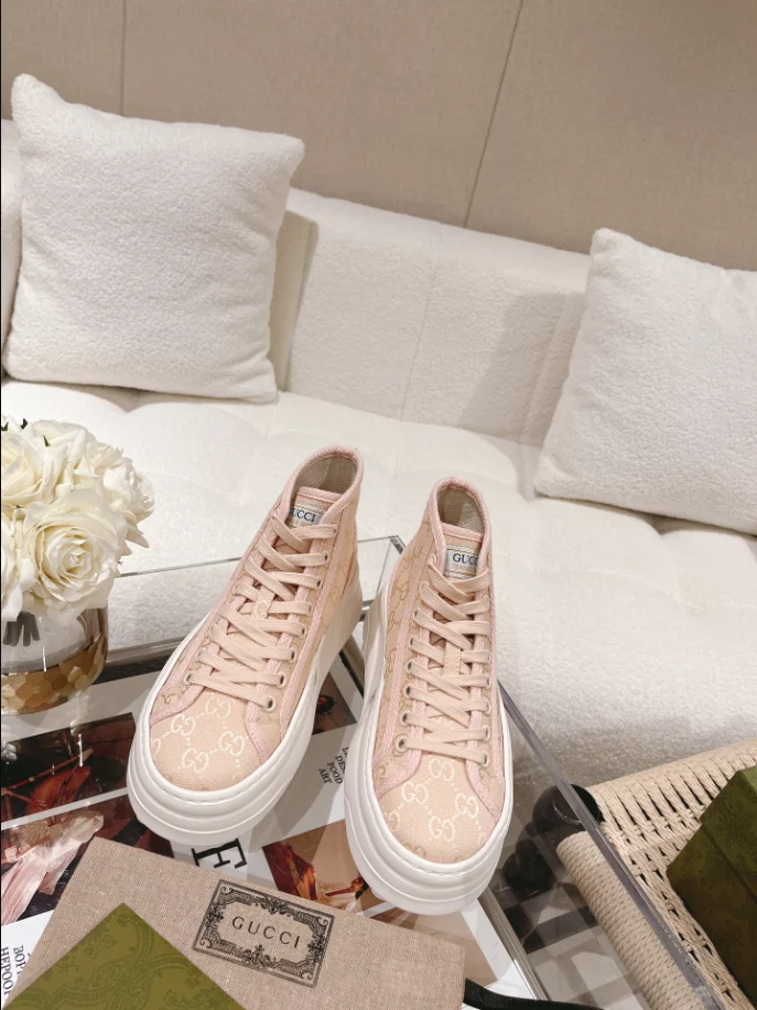 #Gucci #HighTopSneaker #GGSupremeCanvas #TennisInspired #InterlockingG #RubberSole #LaceUp #CasualElegance #FootwearFashion #GucciStyle #IconicDesign