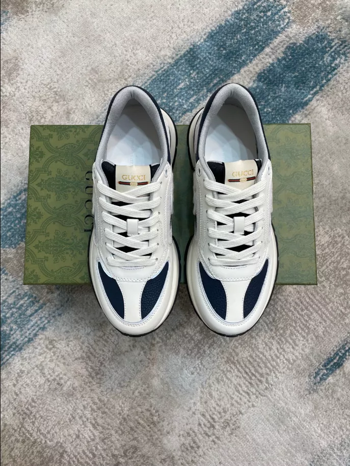 Elevate your style with Gucci Men’s Leather Sneakers. These men’s leather sneakers exude sophistication and style. Made of premium leather and sturdy rubber materials, these sneakers boast durability and timeless elegance. The interior is covered in luxurious leather, ensuring a feeling of luxury and comfort in every step. The meticulously stitched thick leather sole not only ensures durability but also provides unparalleled comfort when worn for long periods of time.
