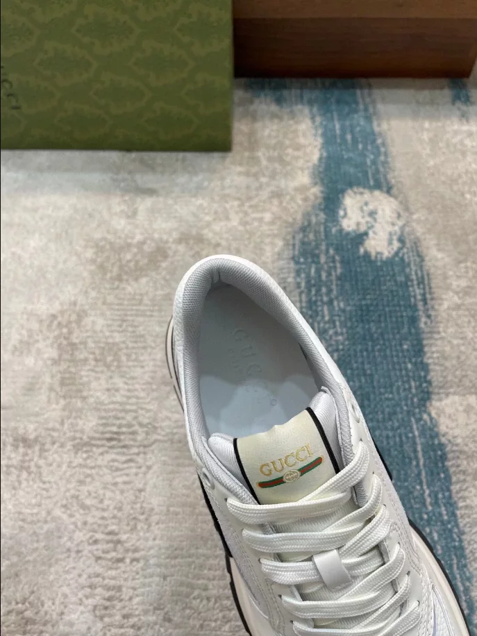 Elevate your style with Gucci Men’s Leather Sneakers. These men’s leather sneakers exude sophistication and style. Made of premium leather and sturdy rubber materials, these sneakers boast durability and timeless elegance. The interior is covered in luxurious leather, ensuring a feeling of luxury and comfort in every step. The meticulously stitched thick leather sole not only ensures durability but also provides unparalleled comfort when worn for long periods of time.