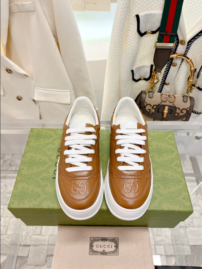 #GucciSneakers #GGLeather #MensFashion #InterlockingG #DesignerFootwear #LaceUpClosure #MidHeel #GucciLogo #FashionVersatility #LuxurySneakers