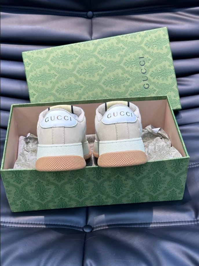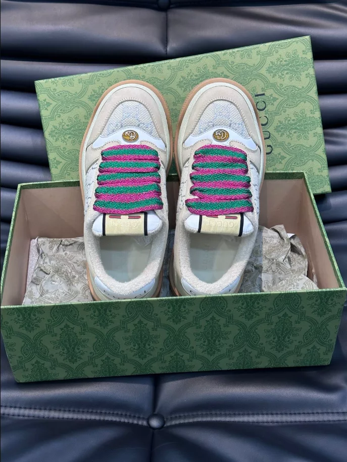 #GucciScreener #GGCanvas #LaméLuxury #DoubleGDetail #VintageGucci #FashionSneakers #FlatformSole #ChunkyLaces #WhiteSneakers #HeelHeight50mm