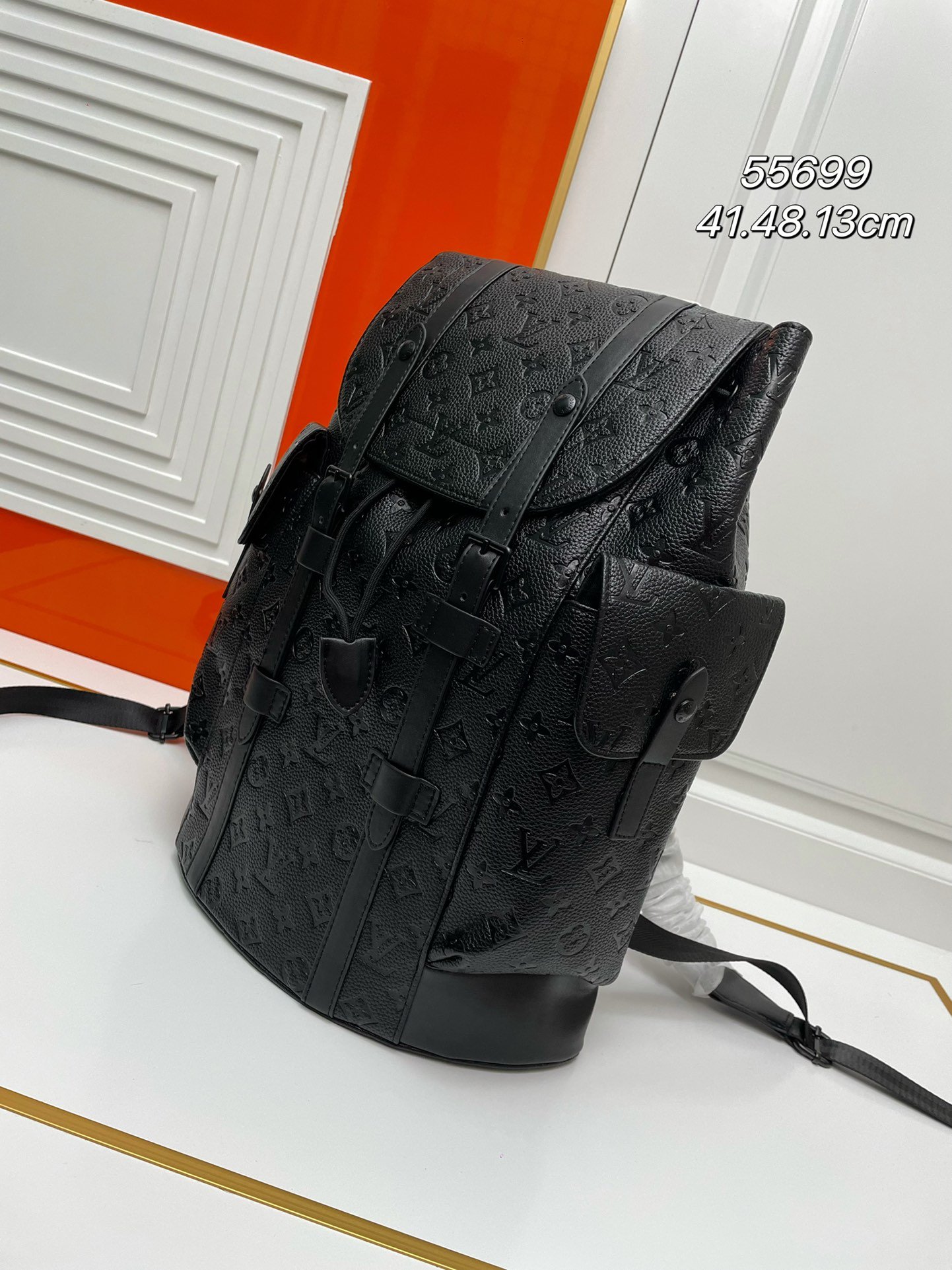 With black leather trim, reinterpret the spirit of the hiking backpack. Gray and black tones are matched with silver snaps and zippers. Equipped with multiple pockets and a leather flap with snaps to ensure the safety of items inside the bag. Detailed characteristics: 41.0 x 48.0 x 13.0 cm.