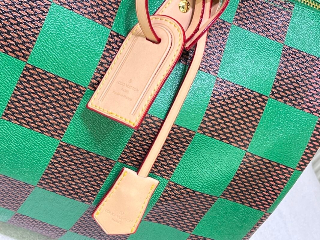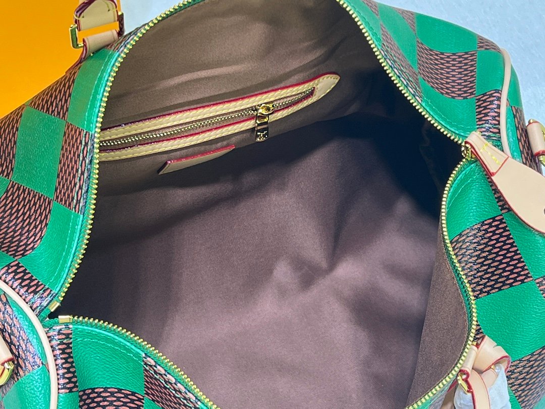This Speedy P9 Bandoulière 40 Monogram Leather handbag is lined with soft-grained cow leather and sheepskin. It presents the blurry look of canvas printing with a silk screen Monogram pattern, expressing the new season of creative director Pharrell Williams. Size: 40x26x23cm