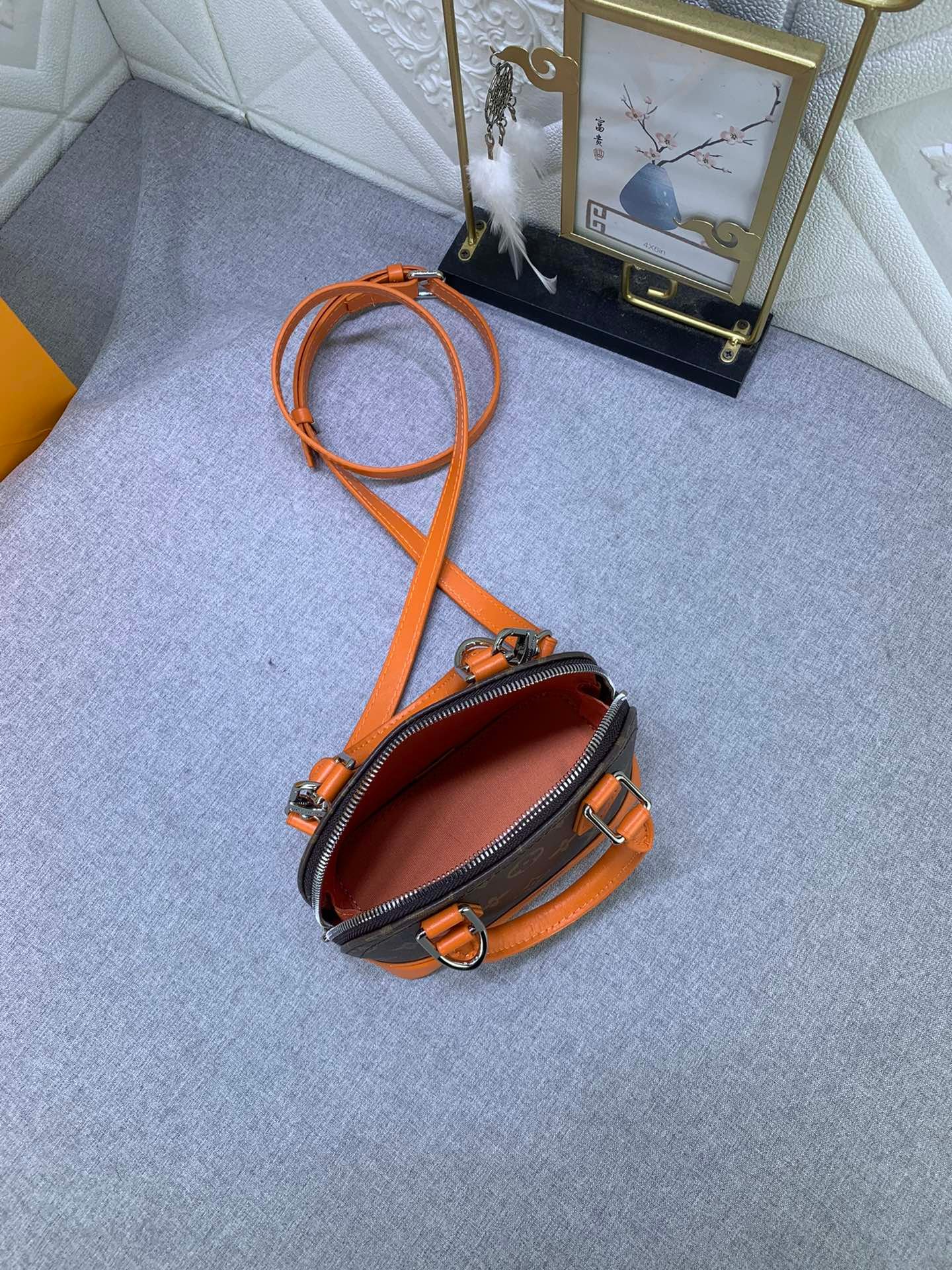 Mini shell bag series. New launch Nano Alma handbag. The Nano Alma reproduces the symbolic Alma bag in a miniature version. Louis Vuitton’s signature Monogram canvas material coordinated with decorations of natural leather. A delicately crafted item that combines traditional charm and modern functionality. When the double zipper is opened, the interior design with surprisingly ample storage space is revealed. With two leather handles and an adjustable and detachable shoulder strap, multiple styles can be created.