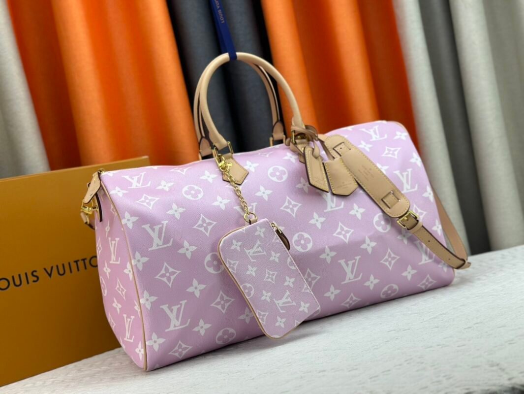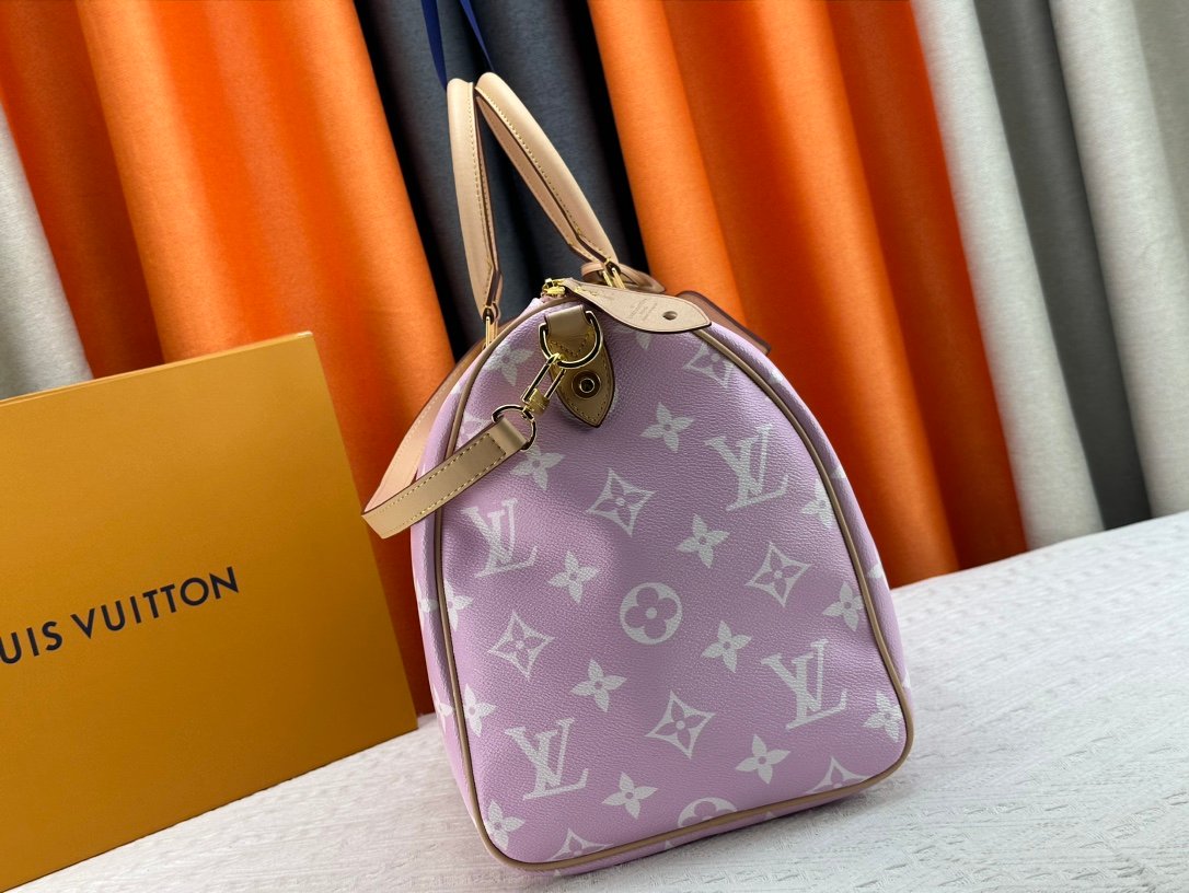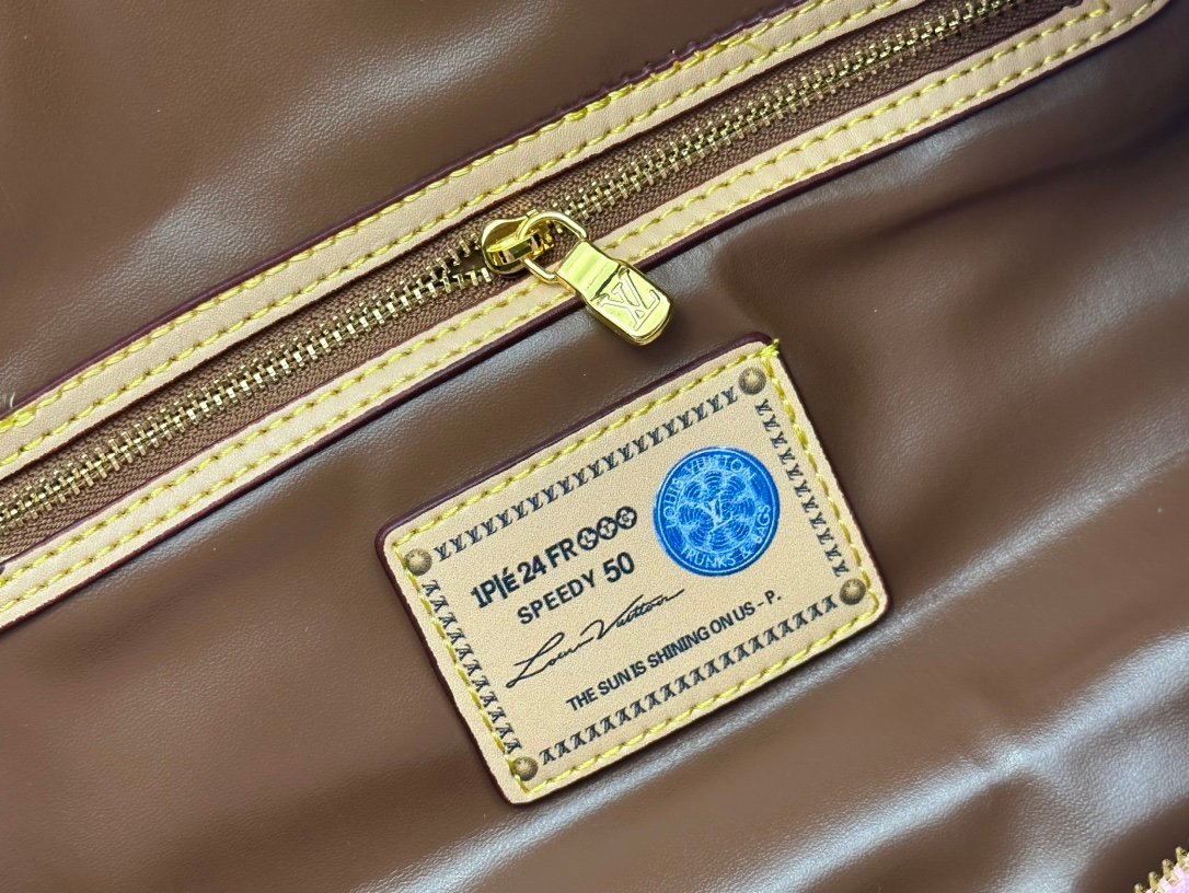 M46964 m24422 m41416 m24420 m11565 Speedy P9 Bandouliére 50 monogram leather handbag is wrapped in soft grained cowhide leather with lambskin lining. The silk-screened monogram pattern presents a blurred look of canvas printing, revealing the new season’s ingenuity of creative director Pharrll Williams. Size: 50x29x23cm.