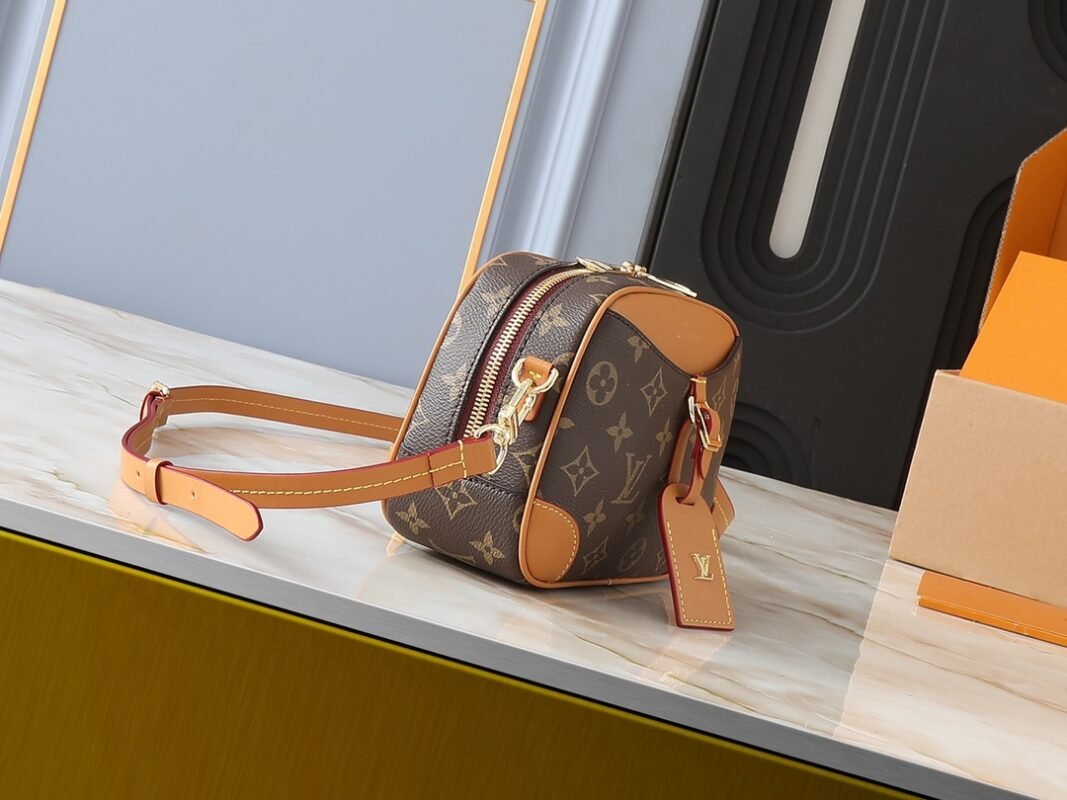 Upgrade the original M45528 old flower white grid [DEAUVILLE MINI HANDBAG]. Nicolas Ghesquière launched the Deauville mini handbag in autumn and winter 2020, showing the pocket version of the classic Deauville handbag. Monogram canvas and natural leather trim create a compact and lightweight camera bag configuration. With an adjustable leather shoulder strap, it can show a retro charm whether it is carried on the shoulder or crossbody. Size: 21 x 16 x 7 cm.