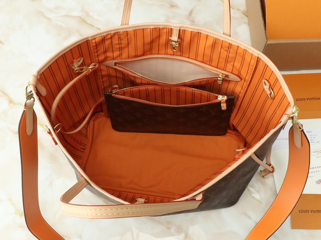 Upgrade the original version🔥Two-sided available🔥M12096 M12257 M11947 M40995 shopping bag series neverfull medium handbag – Explore the exquisite details inside the bag. The redesigned inner bag features a fresh fabric lining and retro details inspired by the archives. Particularly noteworthy is the detachable zippered clutch, which can be used alone as an exquisite clutch bag or as an additional pocket. The bright lining color adds more lively and vivid feeling to the monogram classic canvas. Size:: 32x29x17cm.