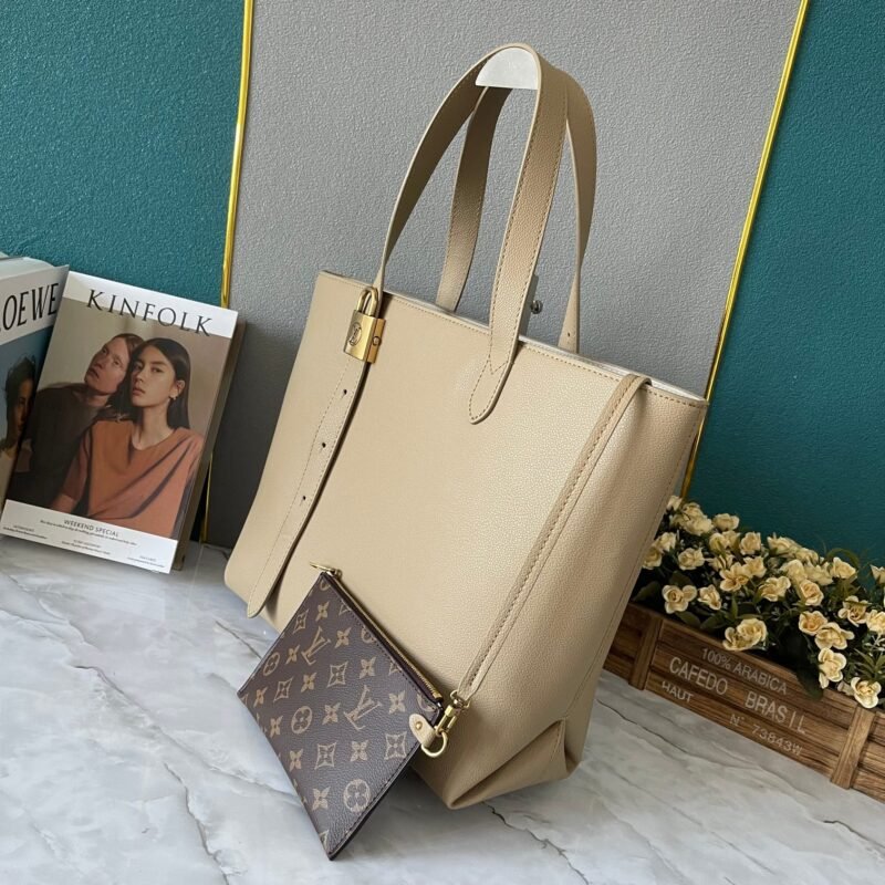 Upgrade the original M25341 M25342 M25343 (quality comparison among three, real photos). This medium-sized Low Key Cabas handbag is wrapped with soft grained cowhide leather and lined with suede leather, crafted with ingenuity to create a magnificent style. The brand’s signature padlock interprets the combination of elegant aesthetics and safety performance. The adjustable handle realizes the free switching between hand-held and long or short shoulder carrying. Size: 47.0 x 30.0 x 14.0 cm.