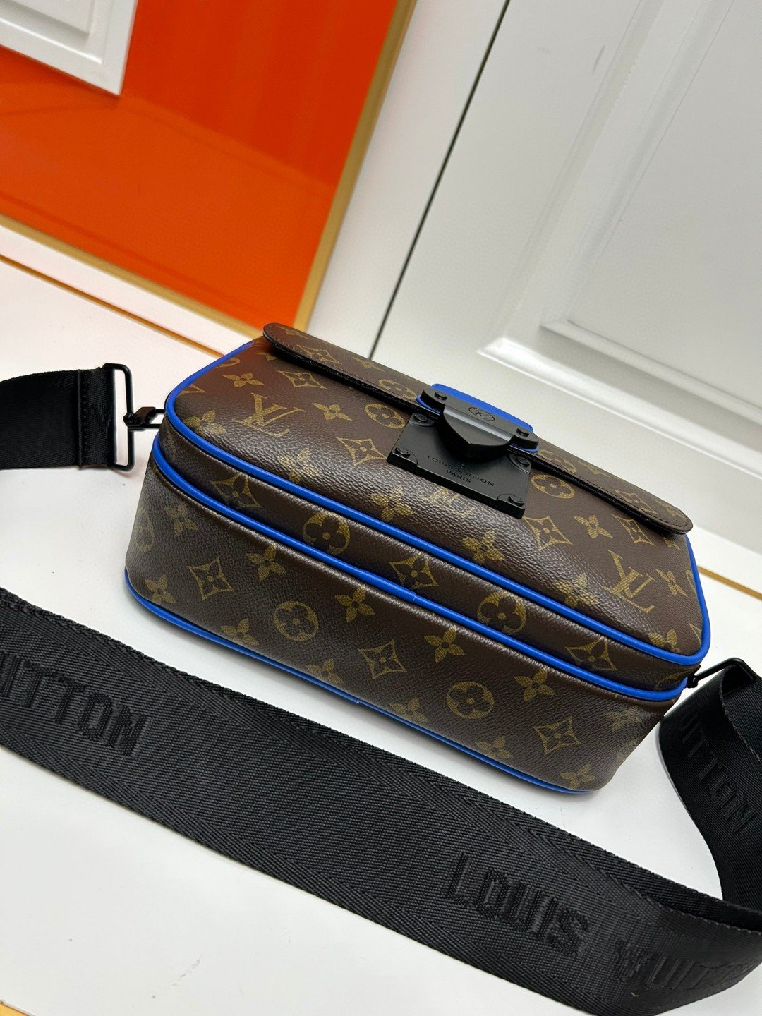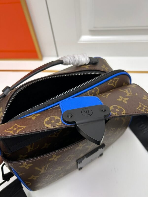 This S Lock messenger bag is made of Monogram Macassar canvas. The new lock is inspired by the hard-sided trunk lock designed by Georges Vuitton in 1886. Special finishing techniques give this magnetic metal lock a striking modern look. It is also equipped with a spacious zipper compartment, a leather handle in hard-sided trunk style and an LV logo shoulder strap. It is stylish and easy to use. Size: 22.18.8. M58489 embossed. M45806 black. M45836 blue.