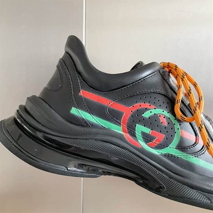 Men’s Gucci Run sneaker crafted with meticulous attention to detail, these shoes are a true embodiment of style and sophistication. The eye-catching blue and red Interlocking G with stripe detail on the upper showcases the iconic Gucci motif, adding a touch of opulence to your ensemble. The rubber sole not only ensures comfort and durability but also provides excellent traction, making these shoes suitable for various occasions. The Gucci logo at the back outersole is a testament to the brand’s unwavering commitment to quality and craftsmanship. The intricate Interlocking G brogue detail further enhances the shoe’s aesthetic appeal, making it a standout piece in your collection. Offering versatility and personalization, an additional pair of laces is included, allowing you to switch up your style effortlessly. The lace-up closure provides a secure and adjustable fit, while the mid heel height adds a touch of sophistication without compromising on comfort. With these Gucci Lace-Up Shoes, you can effortlessly elevate your outfit and leave a lasting impression wherever you go, exuding a sense of refined elegance and luxury with every step you take.