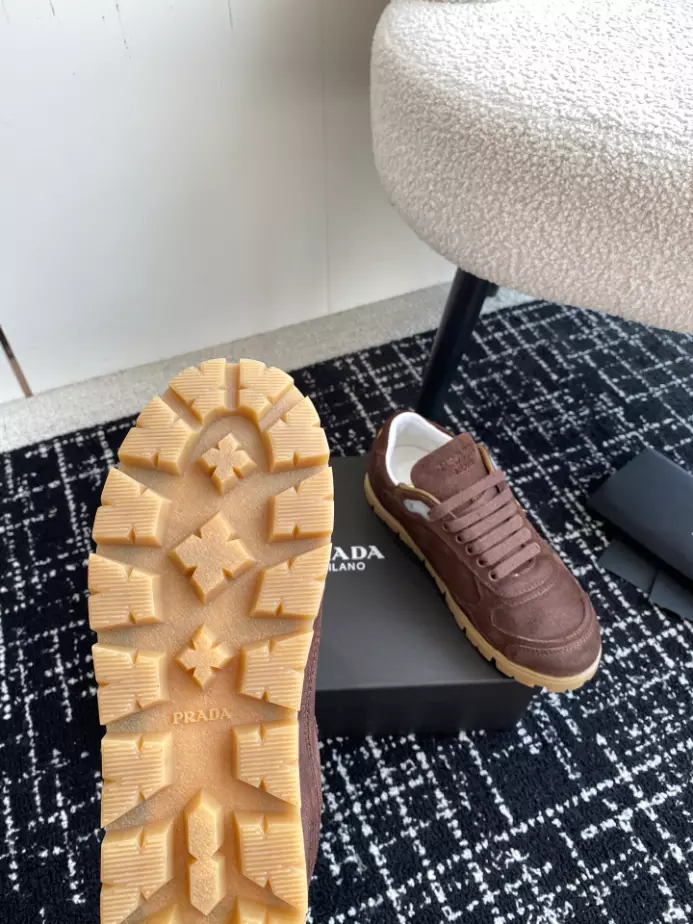 PRADA TRAIL FADED SUEDE SNEAKERS IN DARK BROWN- PRD079