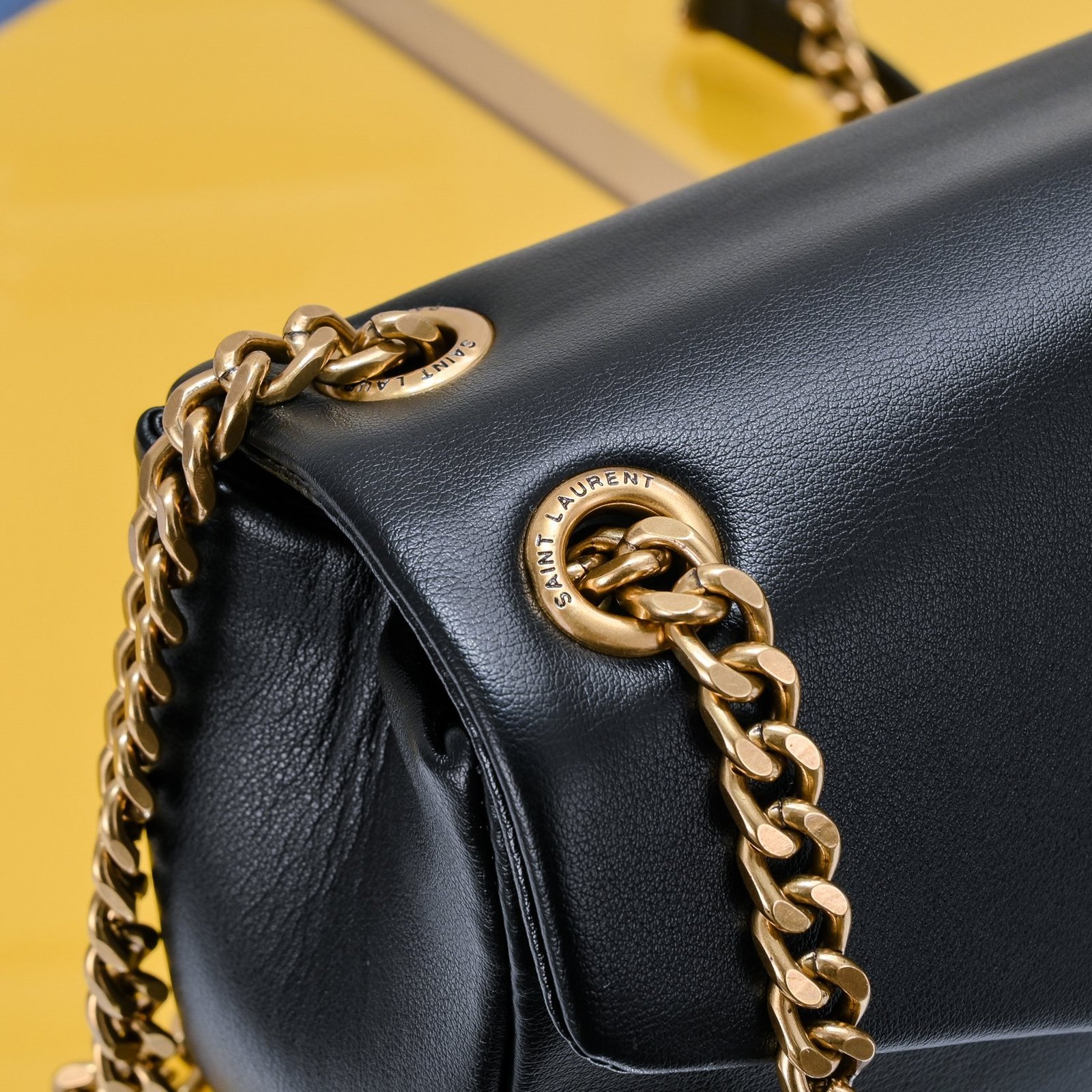 YSL Saint Laurent. New CALYPSO lambskin. The style is very simple and versatile, very suitable for many occasions. The leather texture is soft and waxy. The chain can be used for single shoulder or diagonal cross. Size: 26x14x7cm.