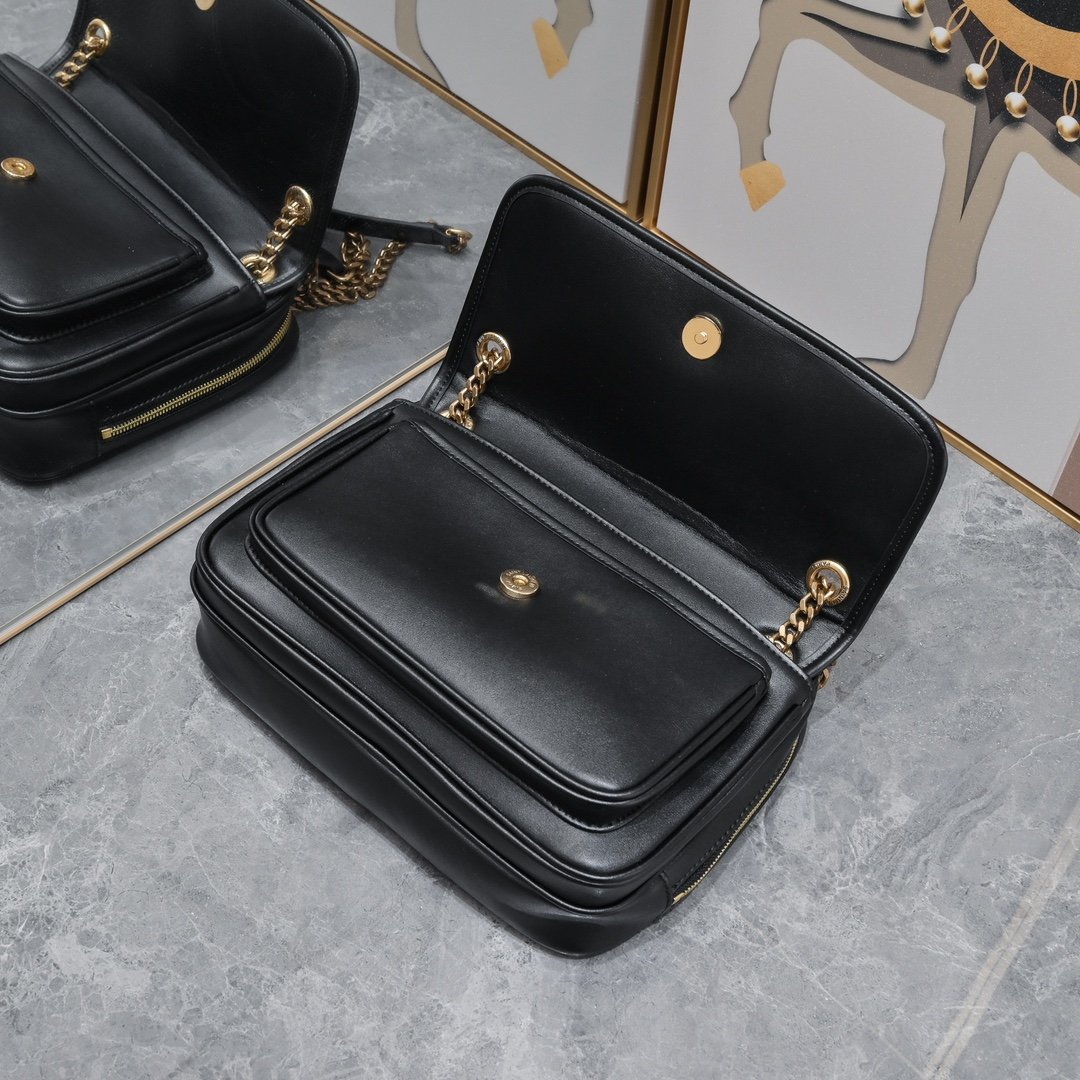 Italian custom vegetable tanned leather with gold chain, timeless matching, front flip and zipper opening and closing design, the visual impact is instantly full! The camera bag is super practical, and the size of daily travel is completely sufficient